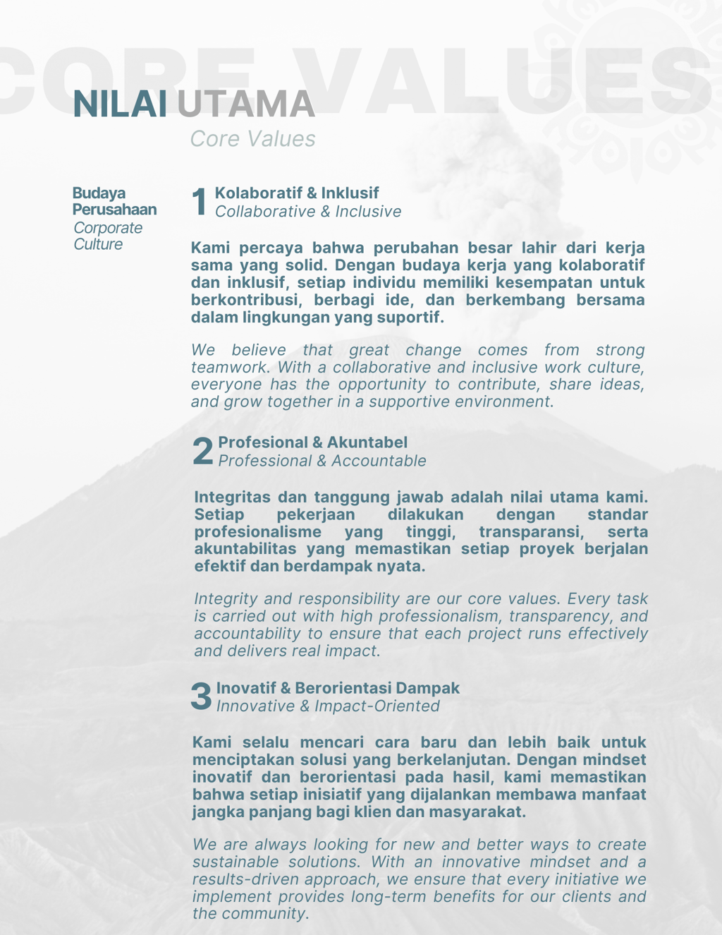 Dengan tim yang solid dan berpengalaman, kami berkomitmen untuk memberikan solusi terbaik yang tidak hanya efektif secara teknis, tetapi juga berkelanjutan dan berdampak positif bagi masyarakat luas.